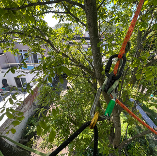 Een prachtige uit de kluiten gewassen notelaar heeft een stevige snoeibeurt gekregen. Door het uitlichten van de de kruin komt er meer licht in de binnenkruin en kan er meer blad aangemaakt worden dichter bij de stam en binnenin de kruin. Omdat de boom toch echt te groot werd voor deze tuin kan ik op deze manier over 3 a 4 jaar terug gaan en de kruin verder reduceren. Hierna kan ik door een geregelde onderhoudssnoei de kruin klein houden en op maat van deze leuke stadstuin.